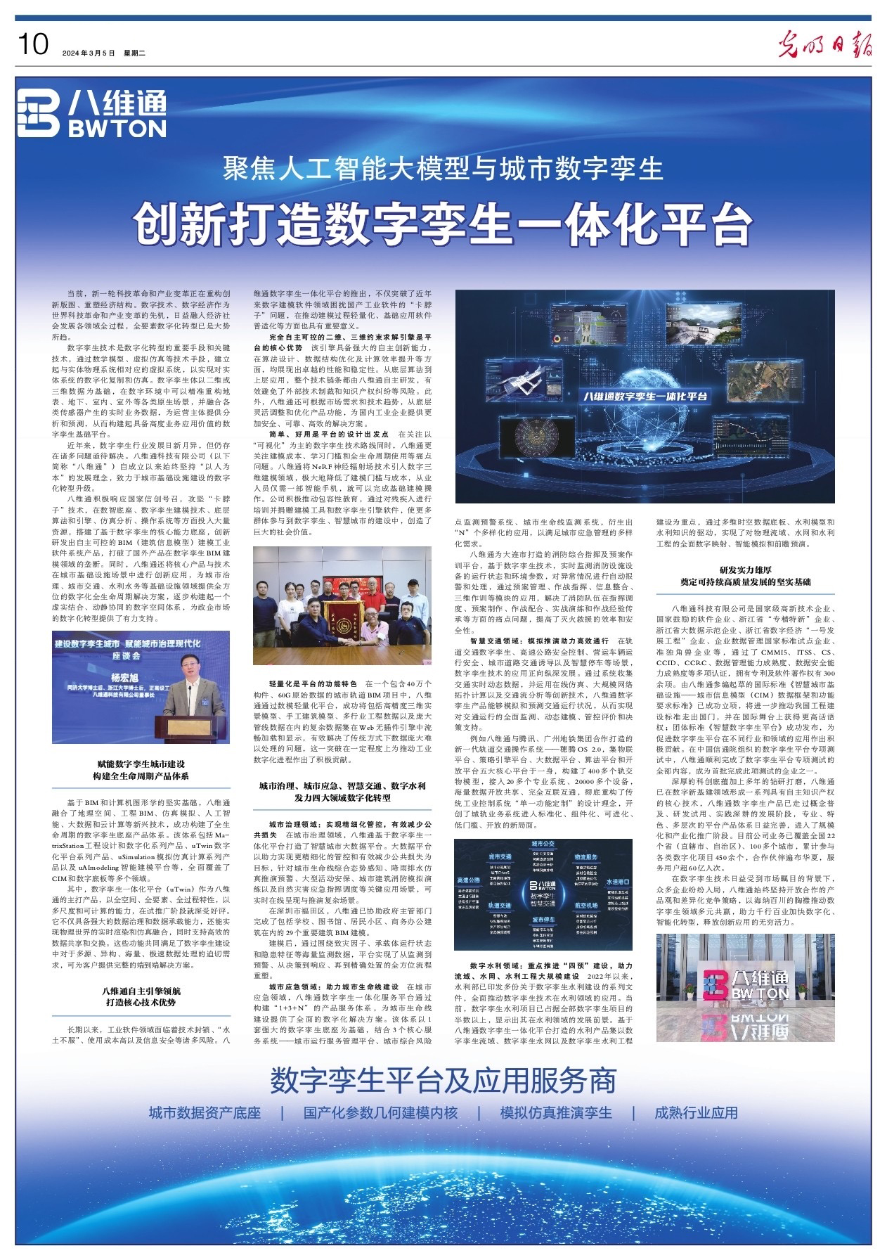 《光明日?qǐng)?bào)》整版聚焦!八維通創(chuàng)新打造數(shù)字孿生一體化平臺(tái)