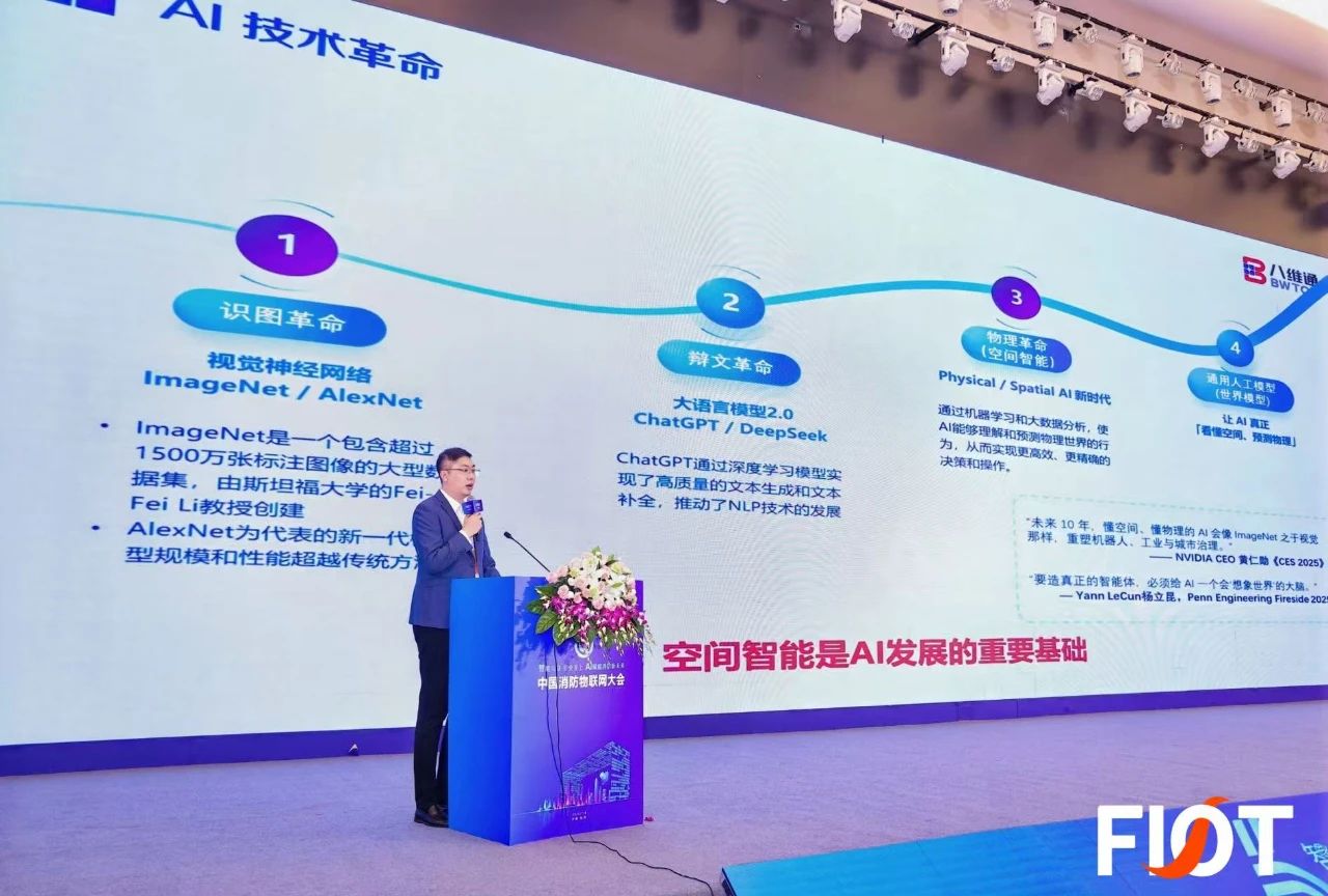 八維通首席數(shù)字官鄭航在特邀報告環(huán)節(jié)發(fā)表了題為《空間智能——應急消防通往AI世界的新引擎》的精彩演講。他分享了八維通在相關(guān)領(lǐng)域的實踐經(jīng)驗與創(chuàng)新成果。八維通依托自主研發(fā)的多模態(tài)物理融合算法等核心技術(shù),打造了“空間物理視覺語義大模型”,在人工智能算力支持下,實現(xiàn)了復雜場景的精準仿真與預判,為智慧消防建設(shè)提供了可靠的決策支持和數(shù)智服務(wù)。希望將AI創(chuàng)新技術(shù)在消防行業(yè)落地應用,發(fā)揮使命擔當,優(yōu)先解決消防領(lǐng)域的重要責任,為救援提供科學決策依據(jù)、為消防應急提供空間智能服務(wù)。
