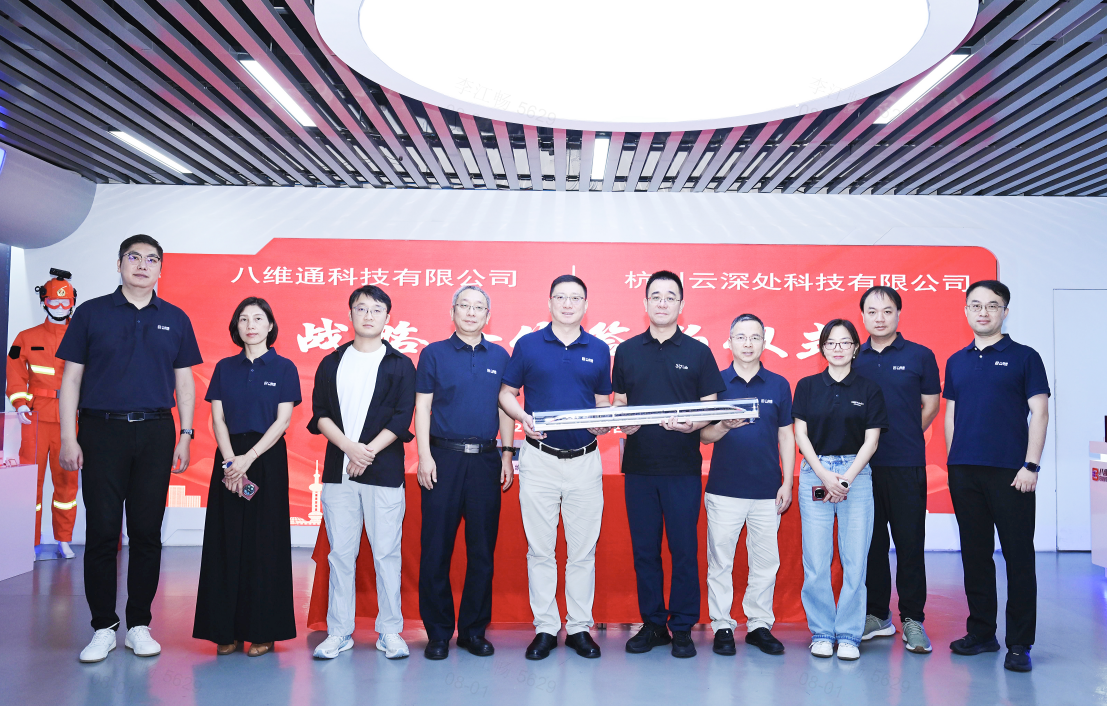 2025 年 8 月 1 日,八維通科技有限公司(以下簡稱 “八維通”)與杭州云深處科技有限公司(以下簡稱 “云深處科技”)簽署戰(zhàn)略合作協(xié)議。八維通董事長楊宏旭與云深處科技創(chuàng)始人朱秋國代表雙方簽約。