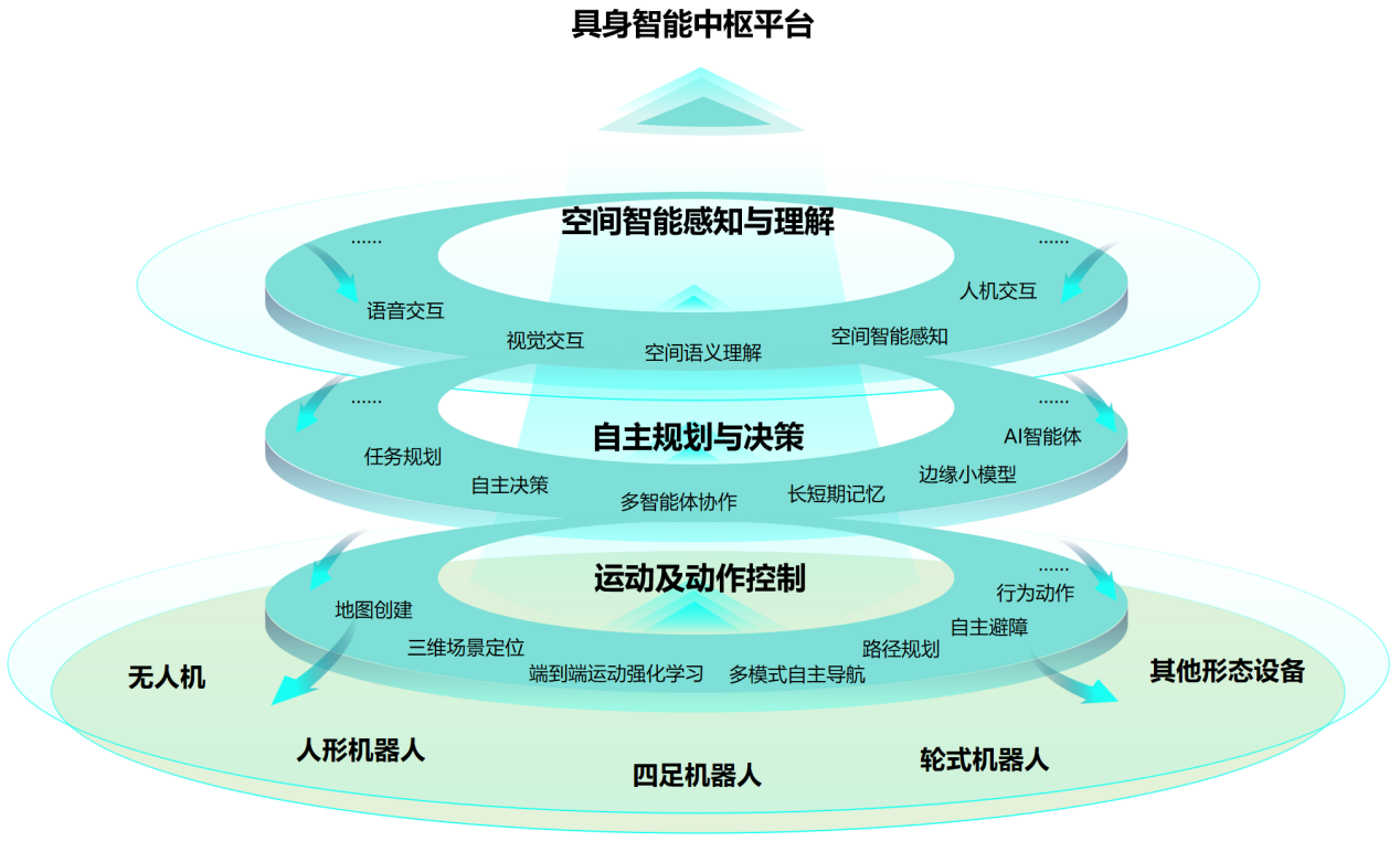 具身智能中樞平臺是面向多場景智能化的機(jī)器人中樞與決策核心,通過整合空間智能、多模態(tài)感知及AI大模型技術(shù),構(gòu)建覆蓋機(jī)器人自主定位導(dǎo)航、集群調(diào)度、虛實交互、任務(wù)決策的全棧能力體系。聚焦巡檢、安防、物流、導(dǎo)覽等復(fù)雜場景,通過邊緣計算與端到端強(qiáng)化學(xué)習(xí),賦予機(jī)器人自主決策、環(huán)境語義理解及精細(xì)動作執(zhí)行能力,實現(xiàn)從單一任務(wù)到復(fù)雜流程的智能化躍遷。平臺采用“中樞+邊緣大腦”的云-邊架構(gòu),實現(xiàn)離線與在線模式的靈活切換,確保機(jī)器人在復(fù)雜環(huán)境中的穩(wěn)定運行,支持第三方系統(tǒng)快速接入,提供標(biāo)準(zhǔn)化API,降低開發(fā)門檻,推動行業(yè)具身智能應(yīng)用快速落地。