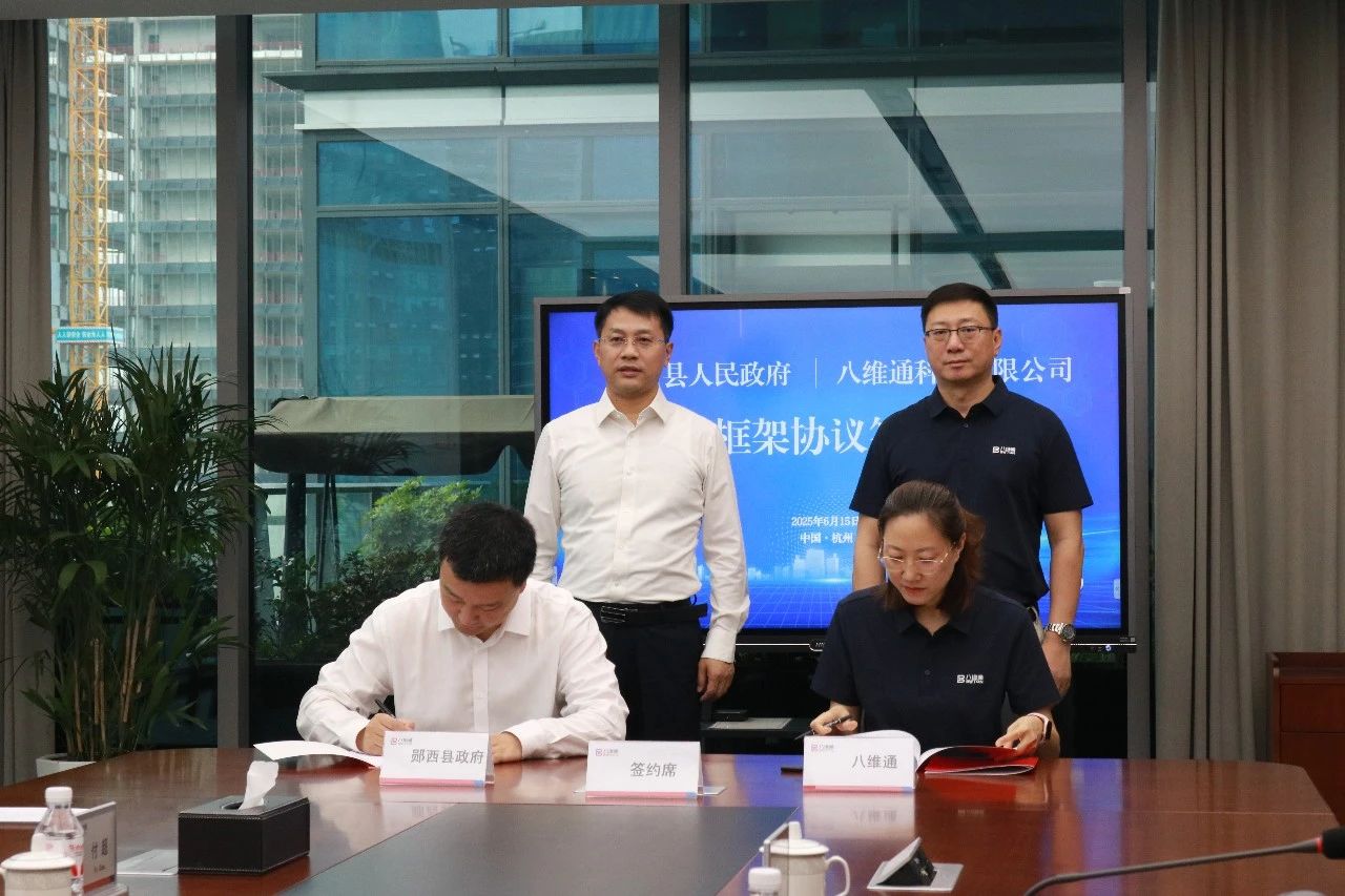 6月15日 ,鄖西縣人民政府與八維通科技有限公司(以下簡(jiǎn)稱“八維通”)在杭州正式簽署《關(guān)于建設(shè)“數(shù)智鄖西”全域數(shù)字化轉(zhuǎn)型戰(zhàn)略框架協(xié)議》。鄖西縣委書記王兵、八維通董事長(zhǎng)楊宏旭出席簽約儀式并見證協(xié)議簽署,鄖西縣政府副縣長(zhǎng)李杰與八維通總經(jīng)理余華瓊代表雙方簽約。